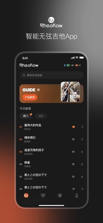 Rheoflow app是一款智能无弦吉他手机配套应用,软件拥有曲库弹唱,节奏鼓机,和弦伴奏等功能服务,可以给予用户更棒的演奏体验,需要的朋友欢迎前来下载使用。