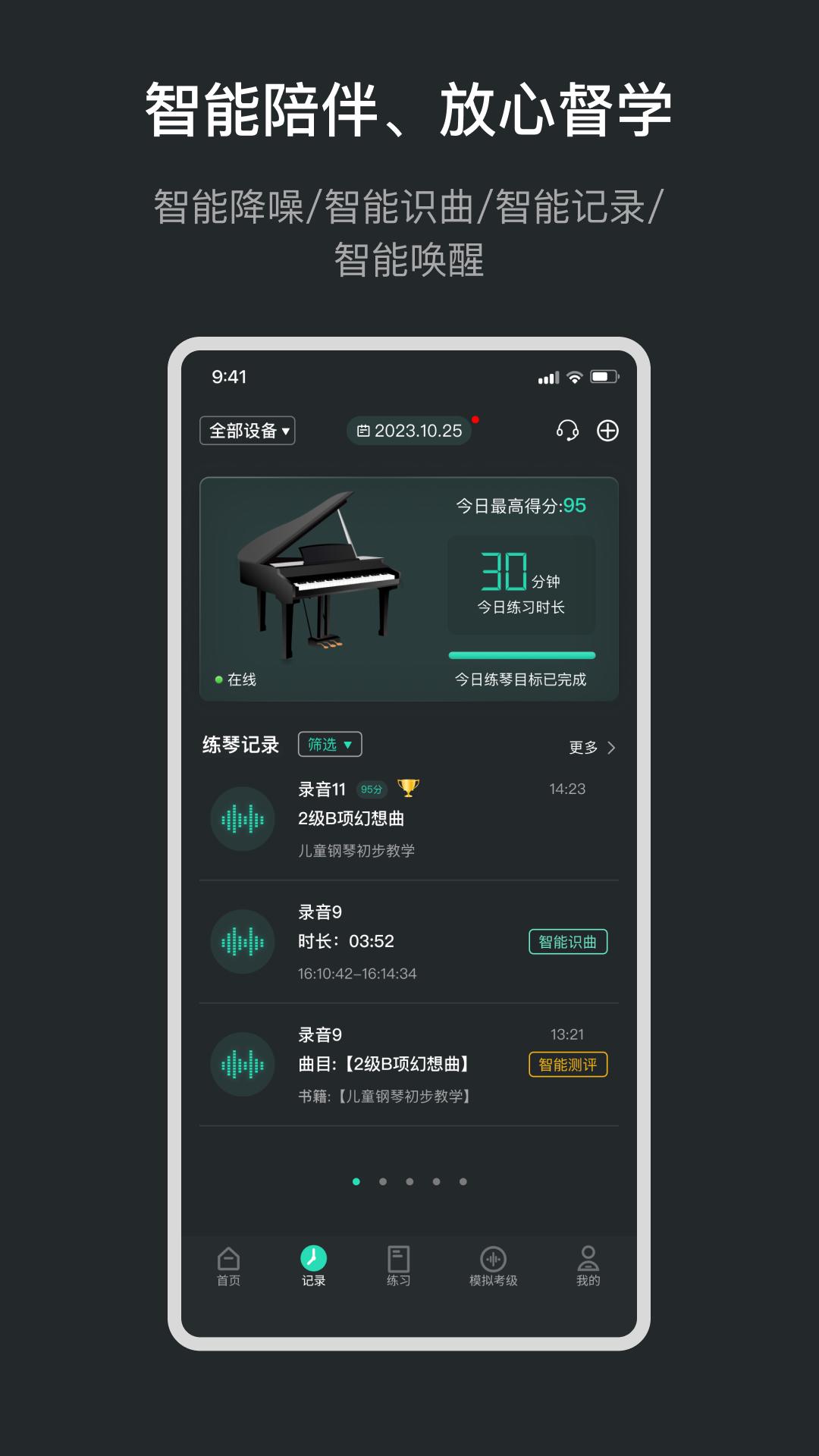 在使用记录功能时,用户需确保已连接音卓尔AI练琴机或其他支持的硬件设备,以便实现精准的演奏记录和测评。