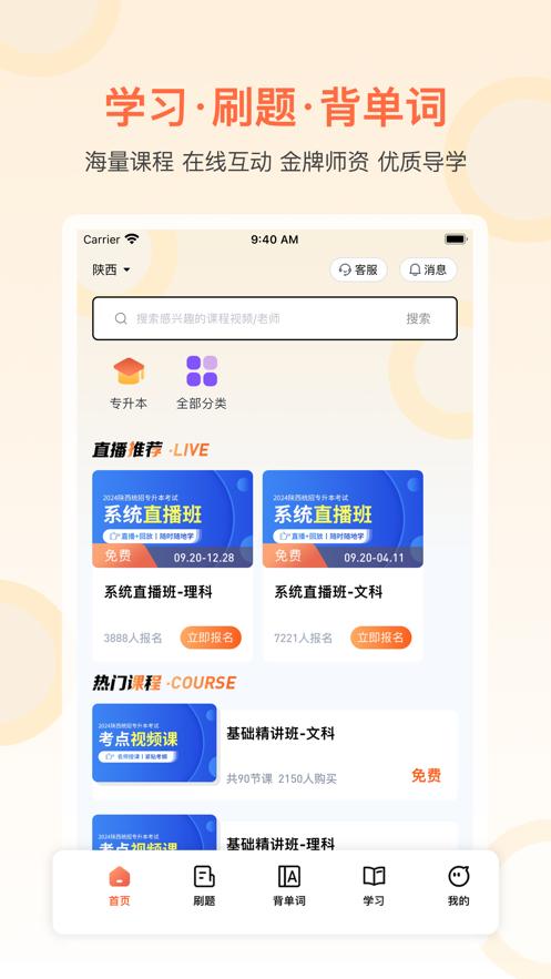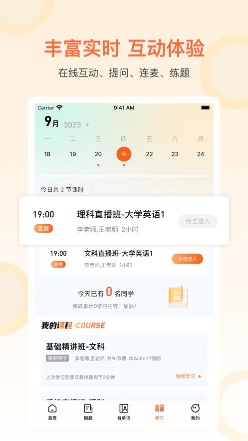 一站式解决在线看视频课、听沉浸式直播课、做海量考试题库,直播教室即时答疑三大需求!拥有完善的知识题库、丰富的单词系统、智能的在线督学系统,致力于帮助更多同学能快捷高效的学习提升。