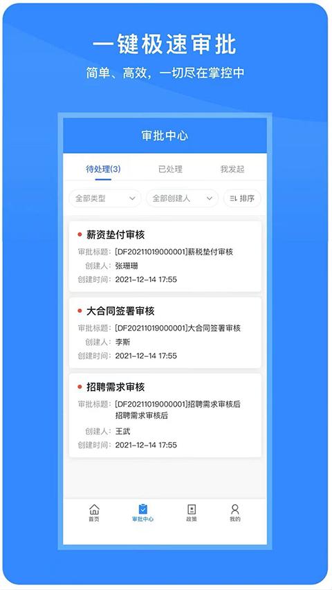 -人事管理:线上管理员工的入职、离职、转正、调岗等全生命周期,简化繁琐流程,提高工作效率。