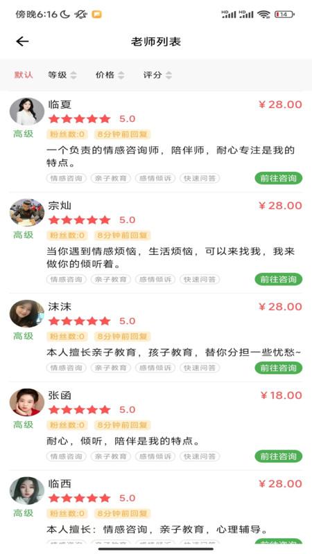 2、在这里咨询是不用排队的,就看你的关注的心理师是否有时间!