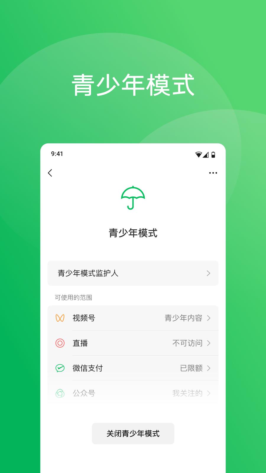 你可以通过音视频通话、群聊、朋友圈来和朋友们分享生活,可以通过公众号、视频号获得文章、视频内容,以及通过小程序方便地使用生活服务,还可以开启「关怀模式」,文字与按钮更大更清晰。