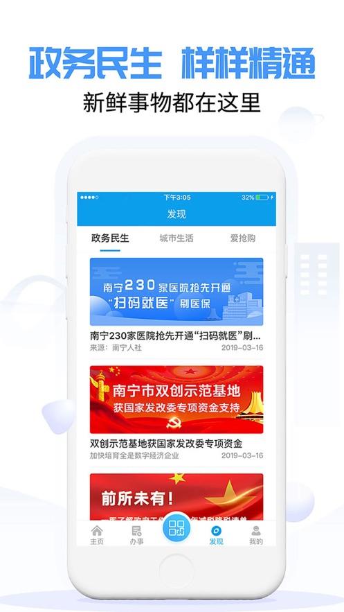 城市生活:保险服务、智慧园博、青秀山、动物园、电费查缴、城市wifi、阳光物价、阳光厨房、城市商城、食堂云、南宁资讯、运动绿城、申请信用卡、在线订水、爱抢购;