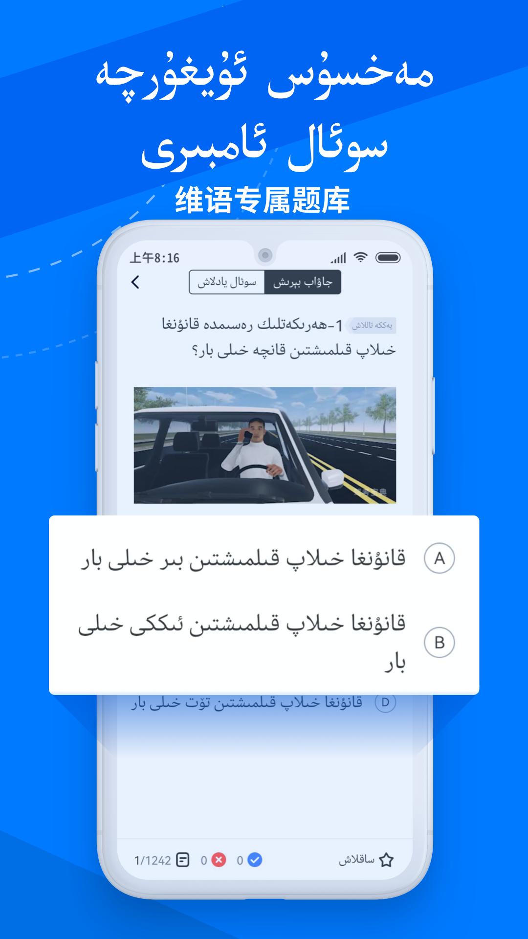 驾考宝典隆重推出维语版软件啦!本软件为维语用户量身定制的小车题库,书写延续维语用法自右向左书写,同步至全国2022年新版考试题库!