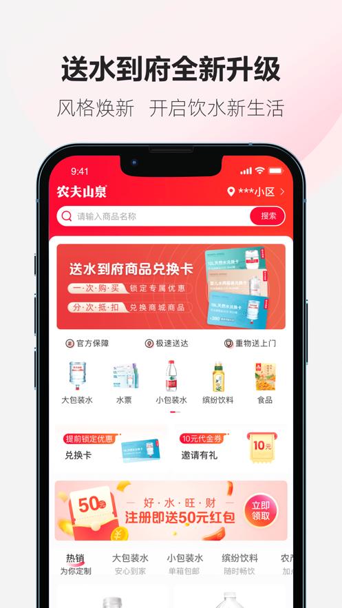 送水到府里头提供了农夫山泉水产品的订购,