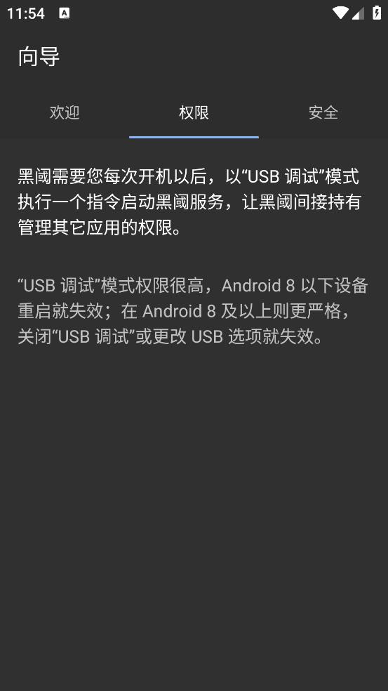 黑阈支持Android 5.0到8.1,不需要root,但是依赖“开发者选项”中的“USB调试”。如果设备支持网络调试,开启之后黑阈会自动激活。