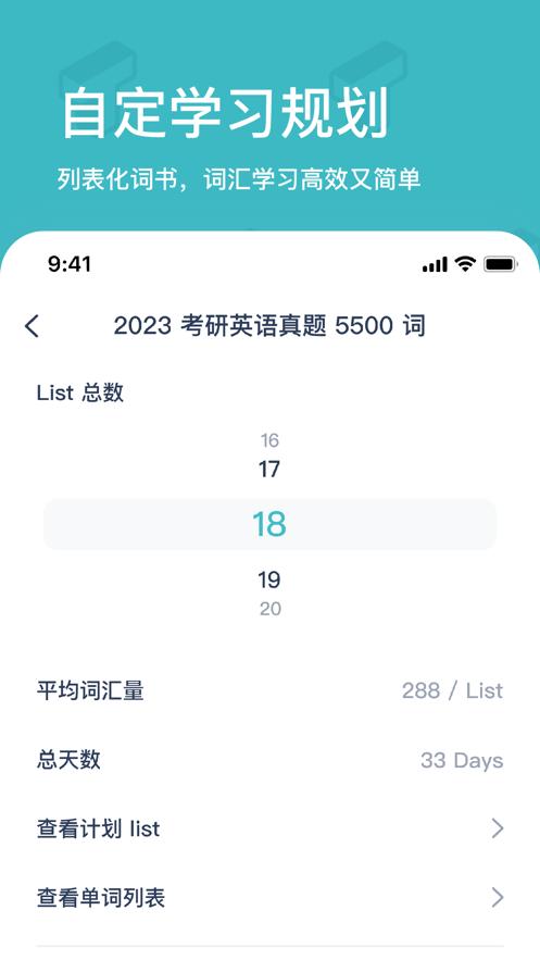 通过艾宾浩斯记忆算法,你可对词书的进行列表化管理,高效规划并强化你的单词记忆。