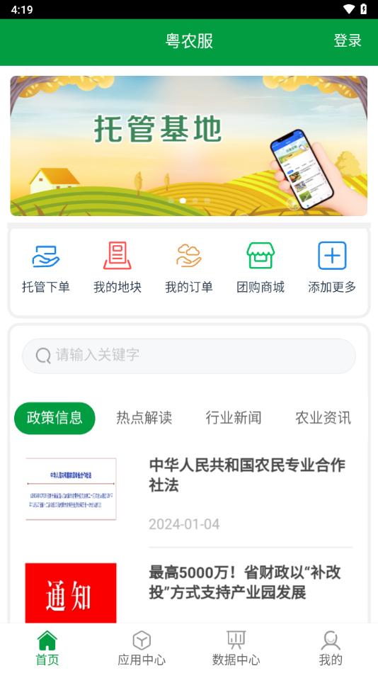 粤农服App是一款农业生产服务平台,平台拥有服务交易、托管服务农场、农服组织管理、后台数据管理、其它服务对接等功能,可以助力更好的农业生产。