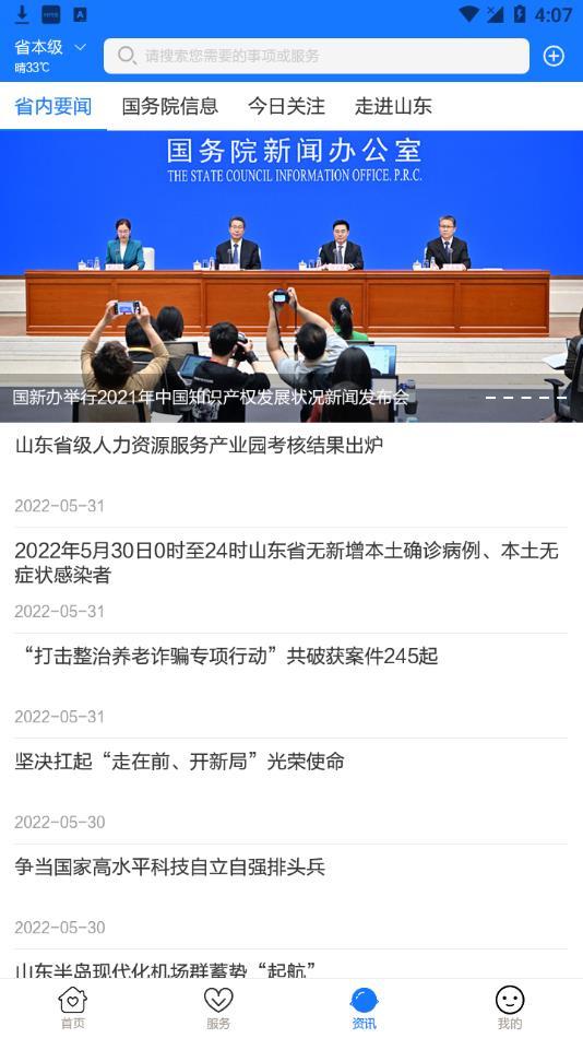 信息服务,爱山东app与各级政府门户站对接,提供随时观看的最新信息服务。