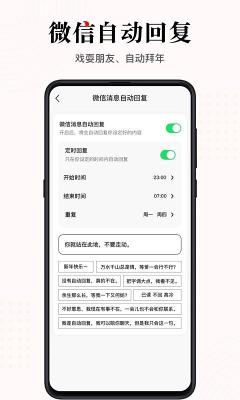 1.非常智能化的自动回复,可以根据对方的消息内容等进行回复