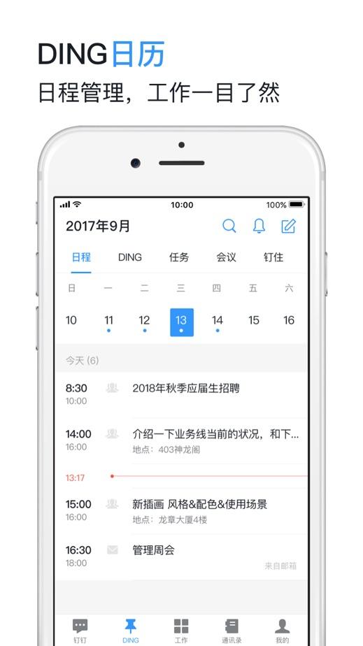 【DING一下,使命必达】紧急或重要的事可以发送DING消息,通过应用内、电话或短信等几种方式100%送达给对方。