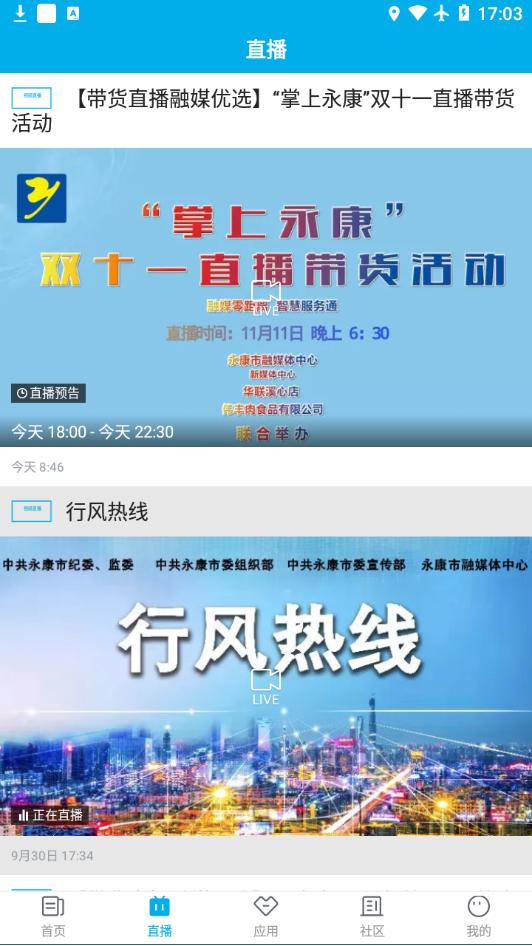 掌上永康app是专为永康市制作的融媒体移动平台,平台拥有新闻资讯,直播,应用,社区等等内容板块,可以帮助更好的引导及服务永康。