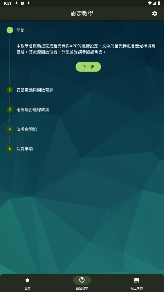 2、这家教学公司将帮助您完成荧光棒和应用程序之间的连接设置。本文中的荧光棒包括荧光棒和大气灯。有关电源位置和外观的差异,请阅读说明。