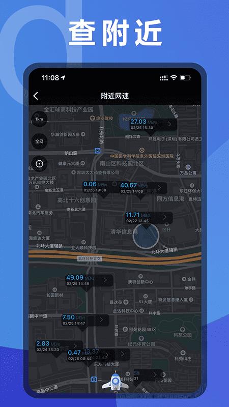 5、附近网速:地图定位,显示周边其他用户网速快慢;