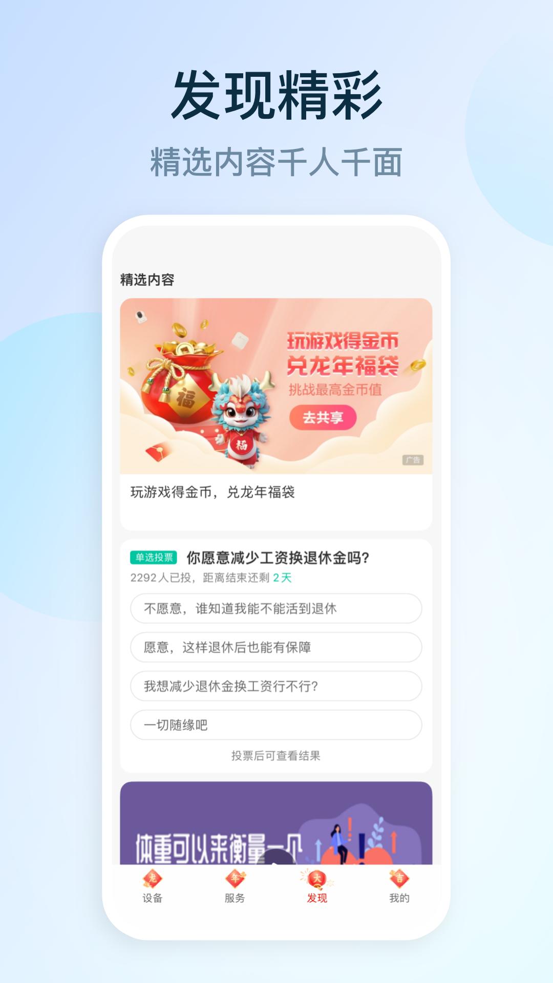 和家亲APP是中国移动面向家庭用户打造的智能设备控制入口,通过和家亲APP你可以完成家中智能设备的连接、控制和交互,实现设备之间的互联互通,还有丰富的智能应用和家庭生活服务等你探索。