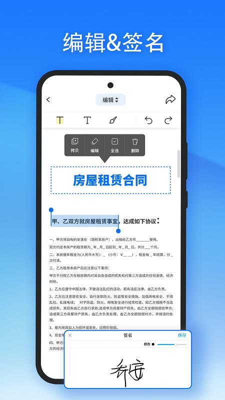 简约的蓝白界面中,沉下心来阅读和编辑PDF,转动大脑发挥创造力,自由选择字号、颜色,任意添加画笔涂改......让你与PDF的每一次相遇,都轻松愉悦。