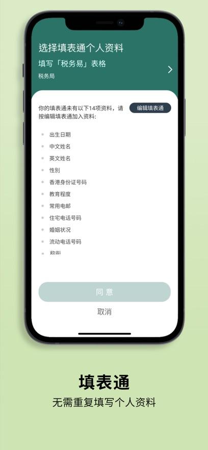 用户可使用「填表通」功能,自定义储存不同的个人资料(例如姓名、性别、身份证号码、出生日期、住址及联络电话等),自动填写表格,无需再为不同的申请填写相同的数据,快捷方便。