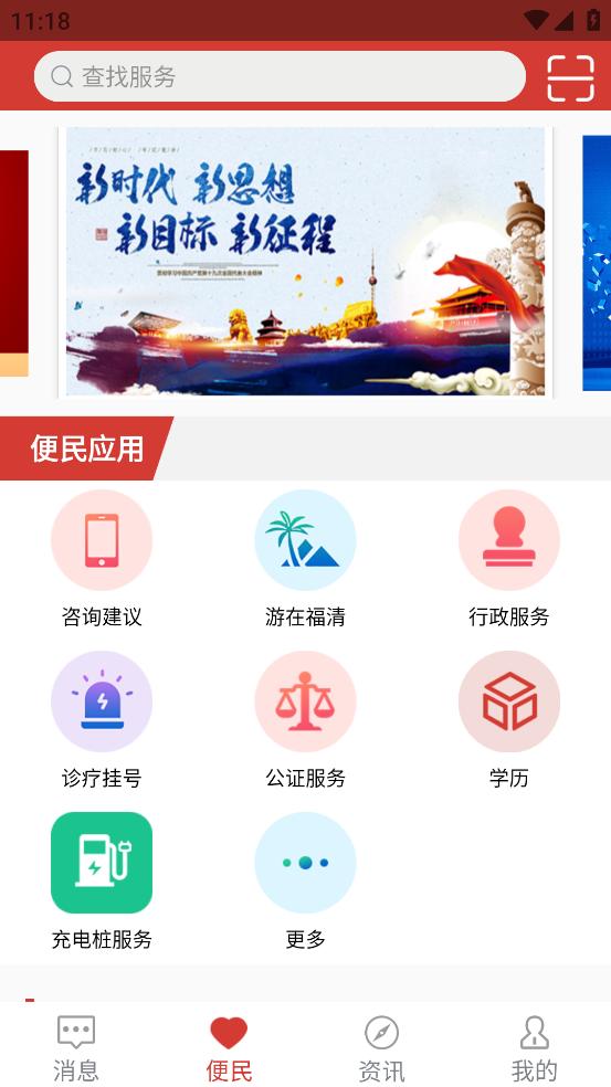 智慧福清app是福清市统一政务服务软件平台,软件拥有消息,便民,资讯,我的等等功能板块,包含了咨询建议,游在福清,行政服务,诊疗挂号,公证服务,充电桩服务等等,可以给予用户更智慧便捷福清生活体验,觉得不错的朋友欢迎前来下载使用。