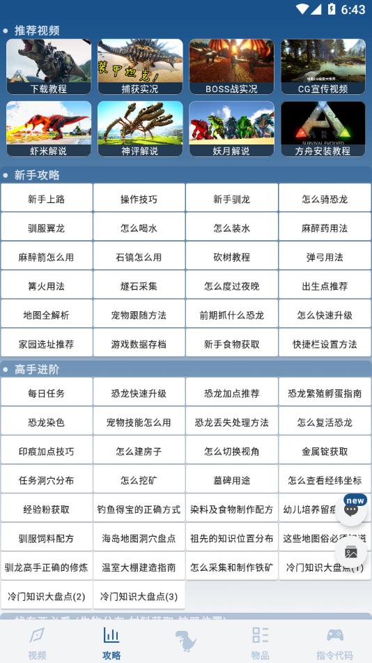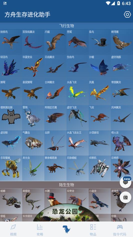 方舟生存进化助手app专为方舟生存进化玩家制作,软件拥有生物大全,物品大全,指令代码,攻略等等丰富内容,是用户玩转游戏的好帮手。