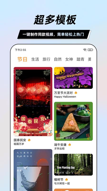-模板特效:内置模板特效模板,后续持续更新,生日,节日,飞天,卡点,溶图,超酷,复古,情侣,旅行,生活一应俱全。