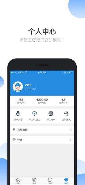 安帮客师傅端是一款家具安卓软件,这个软件给安装师傅们提供了一个广阔的工作平台,师傅们可以在平台上接到更多的工作,给民众们的生活家居带来了不少便利,安装师傅们赶紧下载吧。