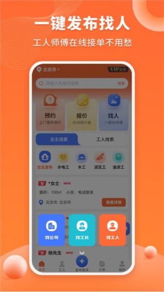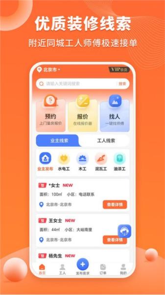 专注于提供装修订单,师傅们可以在平台上方便地接收到订单信息。