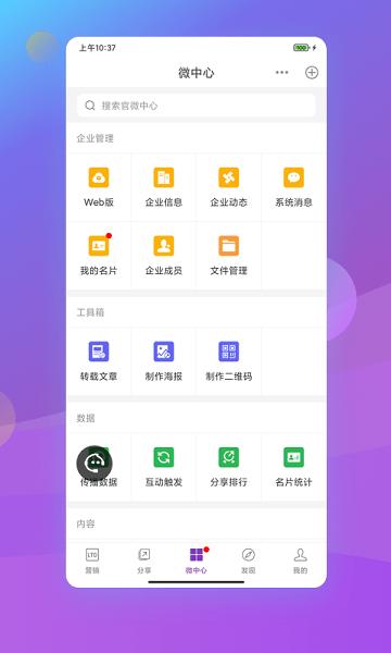 官微中心app是一个匠心打造的企业营销神器,内置了精准的客户营销系统,让您的企业在信息海洋中迅速洞察全网自媒体的营销数据。通过学习,您可以轻松掌握营销秘诀。此外,官微中心软件还提供了丰富的企业管理工具箱,助您在商业世界中游刃有余。