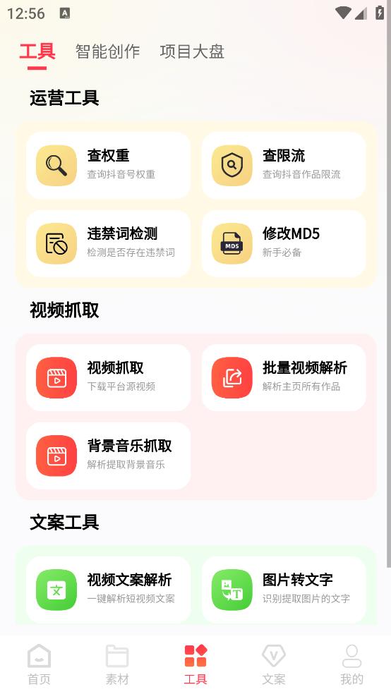我们提供强大实用的创作工具,包括视频提取文案、违禁词检测、数据监控、账号诊断、账号估价、视频镜像。