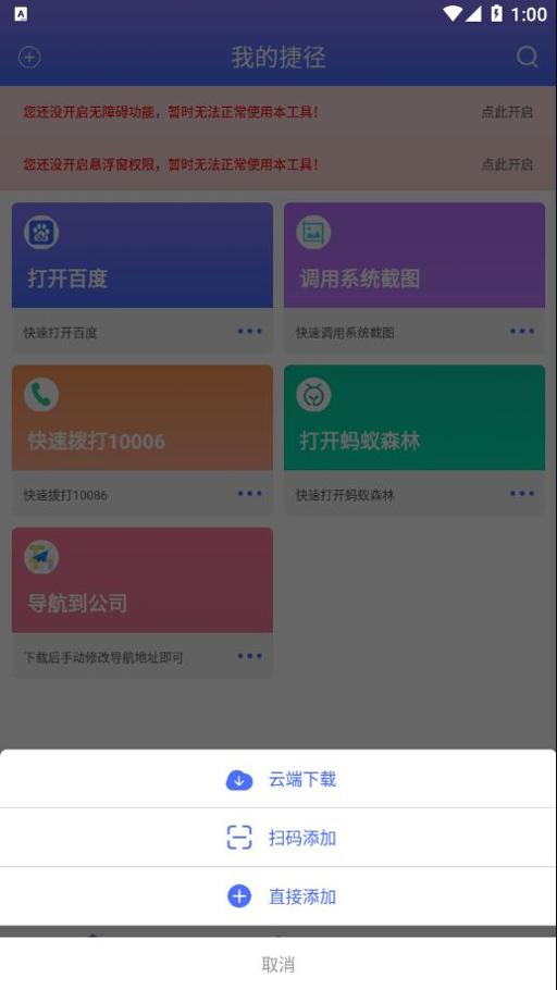 * 如果不想开启无障碍权限,则只能使用部分第三方支持的快捷操作功能,比如支付宝扫一扫、支付宝付款码等,其他功能则会受限制