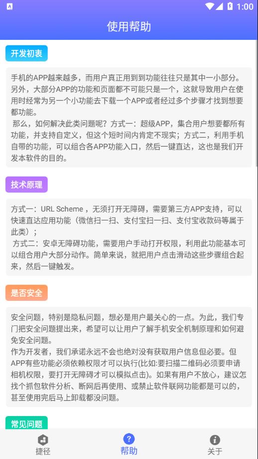 安卓捷径主要就是为安卓机准备的一款操作工具,软件中用户可以自己设置一些快捷指令,这些指令可以是你经常使用的一些操作,一键点开不需要你再一步一步点击,只需要在这里一键即可开启。