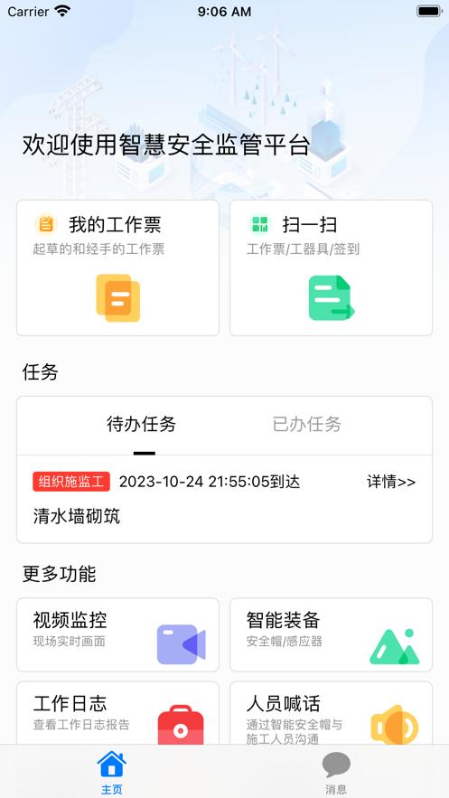 智慧安全监管平台app是一款安全监管移动服务平台,平台拥有我的工作票,扫一扫,视频监控,智能装备,消息等等功能服务,可以帮助更好的安全工作。