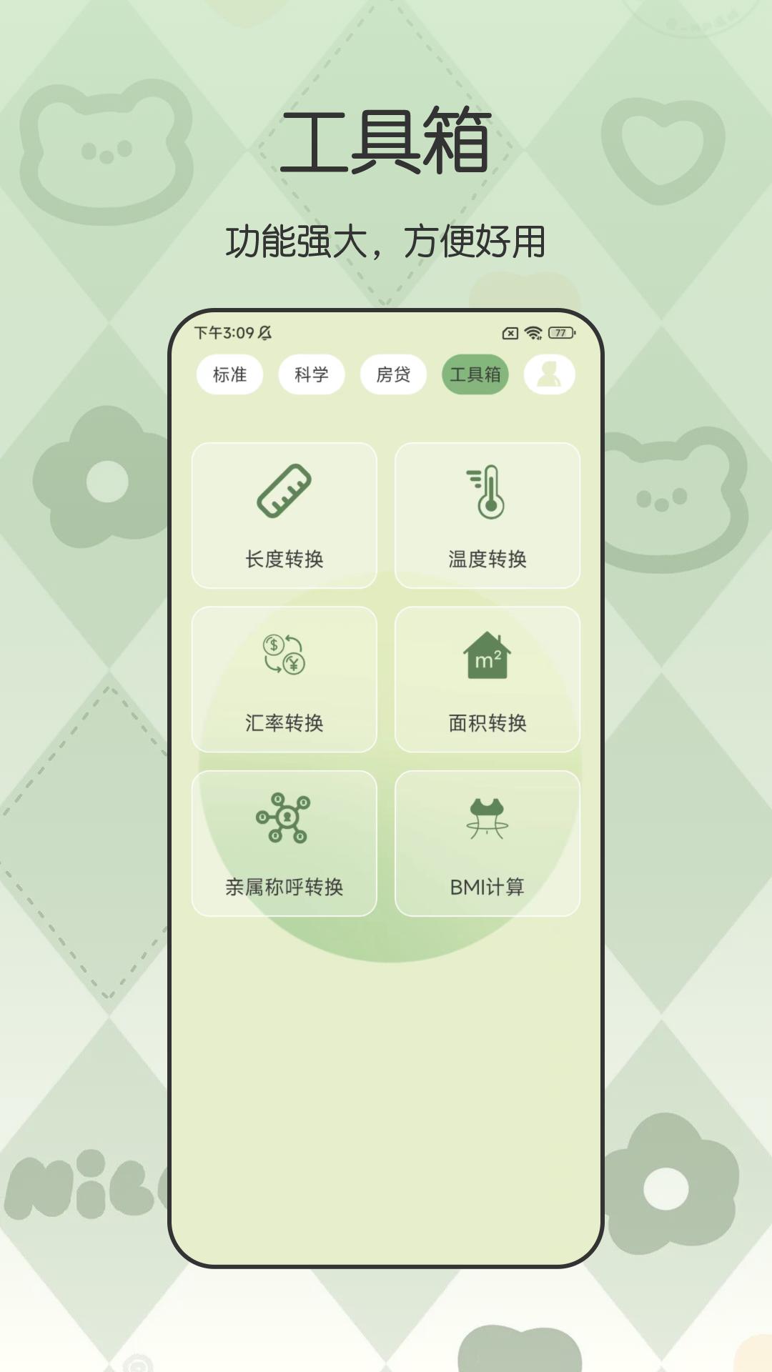 卡哇伊计算器app内置的皮肤非常可爱,为您提供简单好用的计算器工具,整合了超多的计算器功能,可以最大程度的满足用户需求,快来下载体验吧!