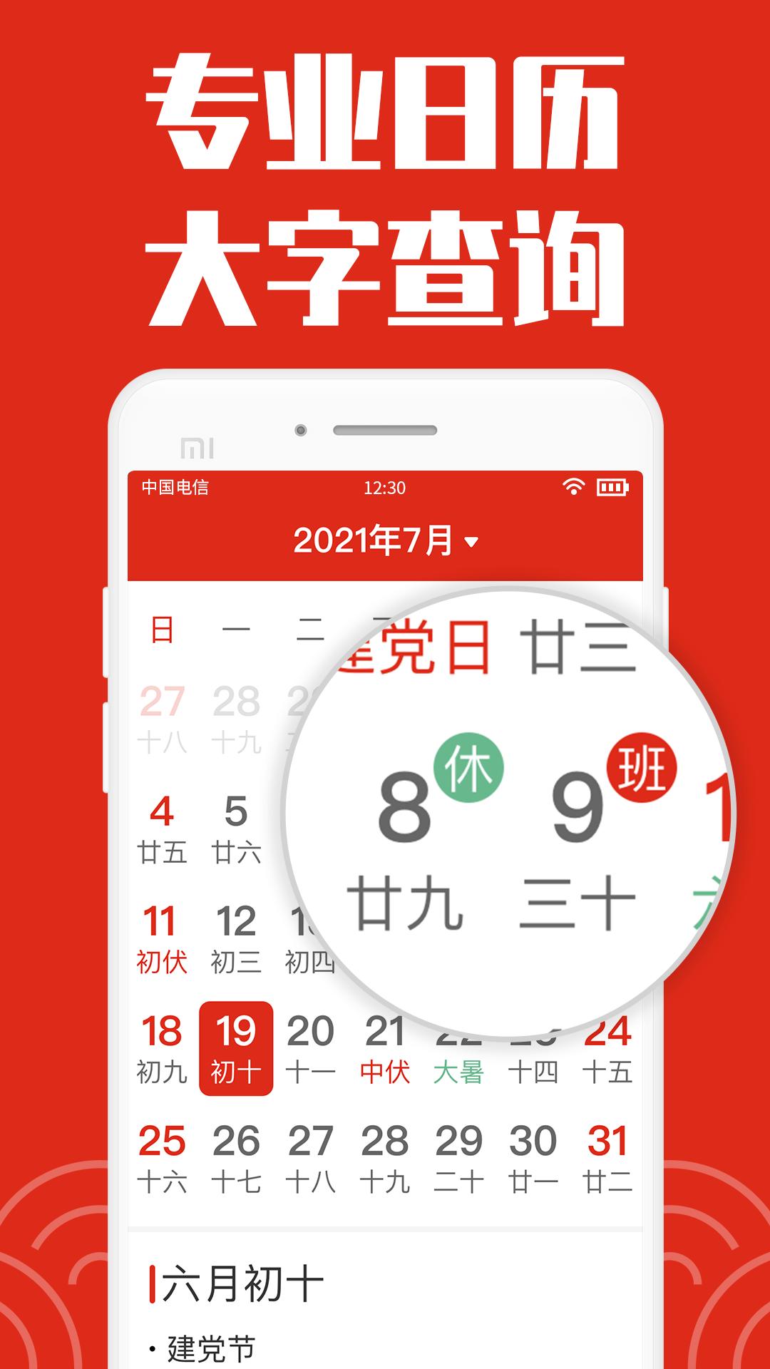 日历大字版是一款字号大、界面清晰的万年历软件,好用方便、能够快速查询各种假期纪念日。本应用依托于中国传统特色老黄历,我们将基础的公历日历与传统的老黄历结合在一起,并且在日历上标注大小节日、纪念日、节气等重要日期,为用户减少四处查找的时间。