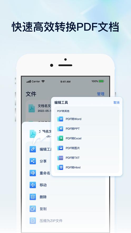 1.PDF转其他:手机PDF转化Word、图片、PPT、Excel、HTML、TXT格式,帮助更方便的处理PDF文件;