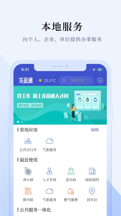 龙游通app最新版下载安装是专为龙游制作的一站式综合服务平台,平台拥有媒体,发现,三民,服务,我的等功能板块,可以帮助更好的引导及服务龙游。