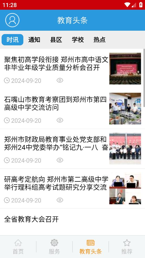 郑州教育文明博客app手机版是专为郑州市制作的一站式教育信息服务平台,平台拥有首页,服务,教育头条,推荐等功能板块,可以助力更智慧郑州教育。
