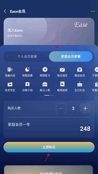 3、右边是家庭会员套餐,它是根据家中的人口来计算会员价格的,选好人数后就可以立即购买了。