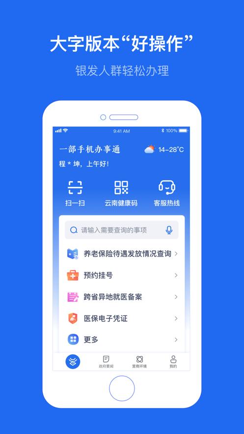 “一部手机办事通”是云南省委、省政府深化“放管服”改革,与建设银行合作开发的移动政务APP,旨在为企业、群众提供便捷的政务服务。