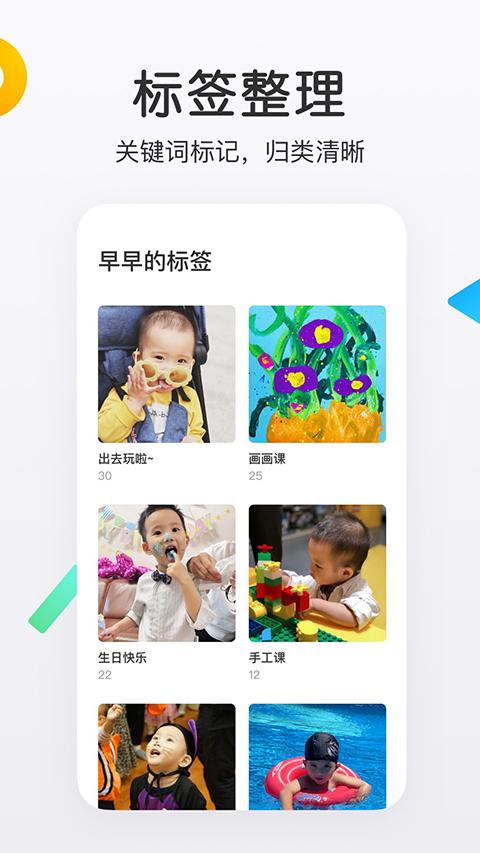该软件提供一键上传海量照片、视频,安全储存,全家共享,共同记录宝宝的成长时光。