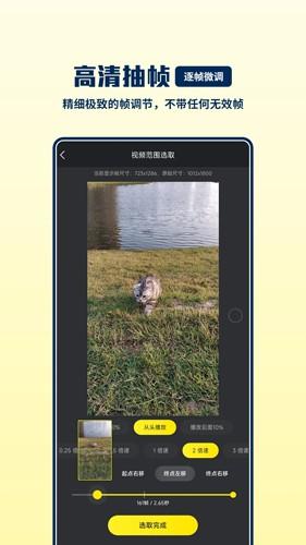 - 视频转GIF高效的视频抽帧实现,精细的视频起始、结束帧选取,完美解决范围选取不准确导致的开始、结束位置存在多余画面问题,完整的制作功能支持,创新样例式评估预期效果,减少等待及返工的麻烦。