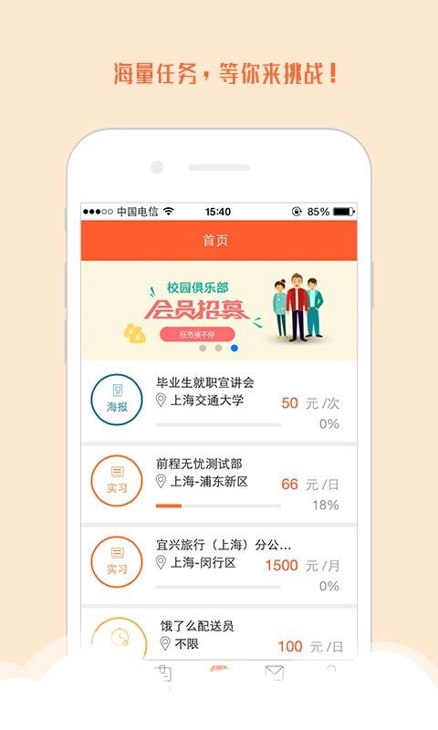 4、专门给众多的高校学生打造一个非常丰富的找兼职平台。