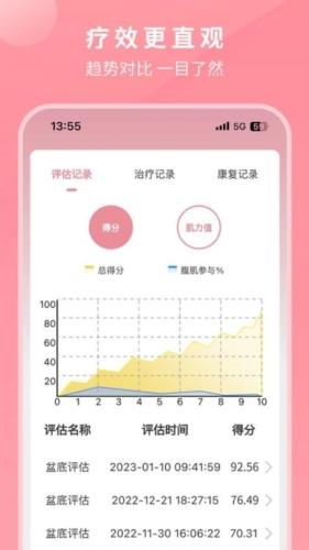 软件中会将对用户的盆底评估情况进行记录,用户可查看历史评估记录信息