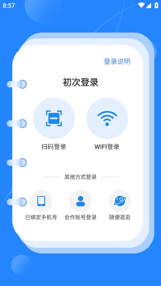 使用"已绑定手机号”、“账号密码”、“随便逛逛"登录,“随便逛逛"只能查看首页无法阅读和听书。