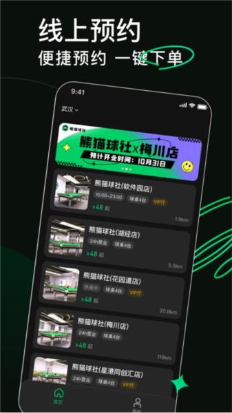 熊猫球社APP是一款全新专业智能台球预订平台软件,软件内可以提前预定自己最近的熊猫球社桌球台,可以看到球馆台球桌有没有满,避免自己跑空排队,是一款非常好用的预订平台。