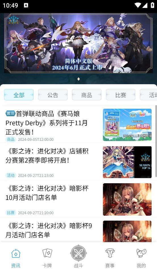 本APP将从对战、资讯、卡查、赛事等方面为“影之诗:进化对决”提供更加有趣、便利的支持!