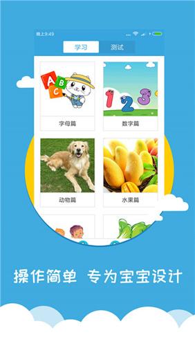 宝宝早教英语app是专为2-8岁的小孩子所打造的一款学习启蒙软件,软件内拥有大量的学习资源,可以根据孩子的年龄来匹配孩子的专项课程,而且在学习中还可以让孩子认识蔬菜、水果、小动物等等来培养孩子的兴趣。