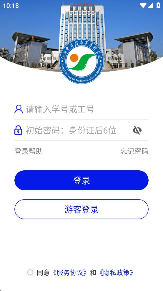 下载并安装完成app,打开如图所示。输入工号/学号,初始密码为身份证后6位进行登录