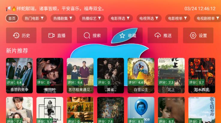 1、在本站下载红苹果影视tv后打开软件;