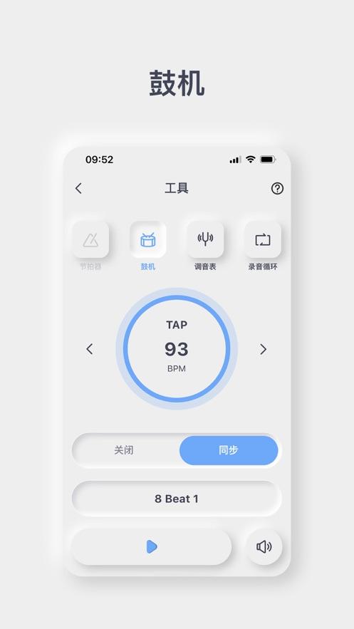 3、通过APP可开启鼓机、节拍器、循环录音、调音表等功能