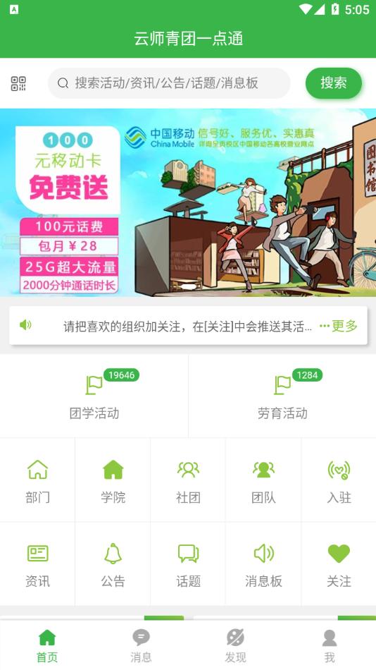 云师青团一点通app是云南师范大学官方推出,软件拥有团学活动,劳育活动,消息,发现等等功能服务,可以帮助学生更好的的全面发展。
